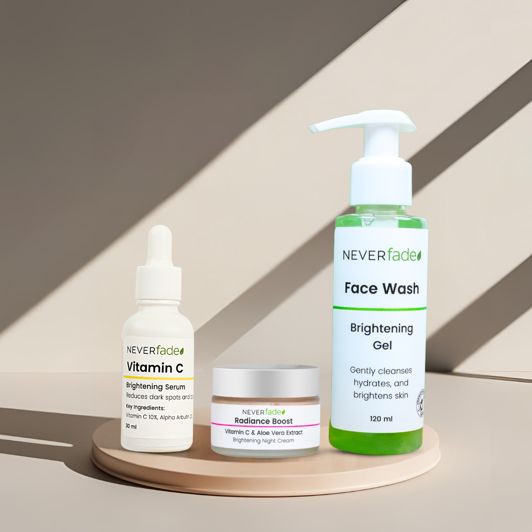 Achieve a radiant, glowing complexion with our Brightening Bundle—a carefully curated set of four skincare essentials designed to cleanse, nourish, and protect your skin.